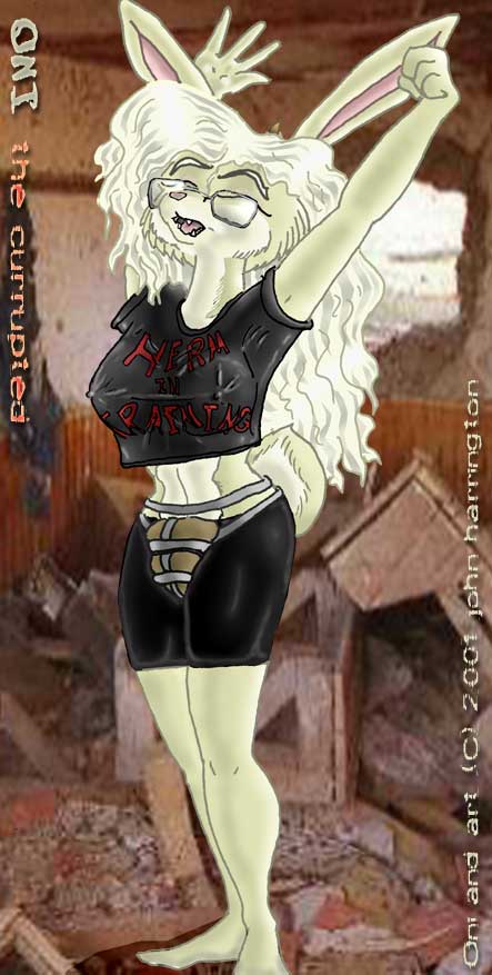 Surprise! Not one of me this time, but one of Oni, just getting used to her corrupted (or as she always spells it, 'currupted' *giggle*) demonic form, as shown by her creator, John Harrington.