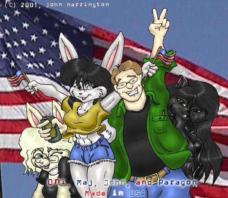 Another pic that's not of me. John (Harrington) says he doesn't like this pic much...but I do, so nyahh! Patriotic bunnies, the world will never survive...
